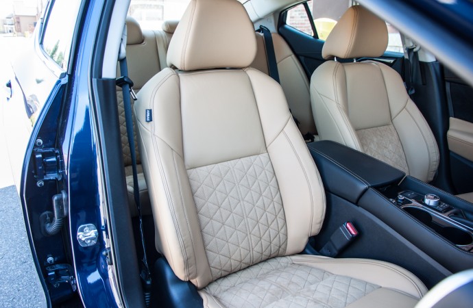 Adding to the Maxima’s base price of $35,900, this sporty SR trim level goes up to $41,100 before incentives. This includes everything standard on the base SV and adds 19” diamond-cut and machine-finished alloy wheels, LED headlights, the previously-mentioned sporty bits on the chassis and suspension, the quilted seats with Alcantara, There’s also a Bose premium sound system with 11-speakers, an 8.0” touchscreen with multi-touch control, heated and ventilated seats, a 7” colour display within the instrument cluster that controls settings and other drive functions, and countless other features that make the car a great place to spend hours on end.