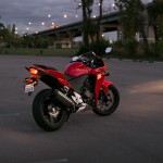 What’s more, the 500R, with its slightly greater mass (425 lbs wet weight versus 357 lbs) seems to be far less affected by wind turbulence at highway speeds than the gust-prone 300, leaving the rider with greater confidence at higher speeds than the littlest CBR. The full fairing gives decent wind protection and the raised clip-on bars take some of the pressure off the wrists, making the 500R a reasonable choice ever to try some sport touring riding.