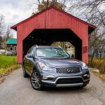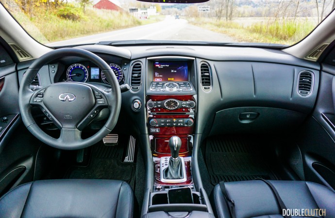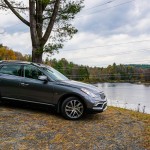 The numbers are quite simple – under the hood of the 2016 QX50 is the Infiniti corporate 3.7L VQ-series motor, slightly massaged for this application. The 3.7L pushes 325 horsepower (at 7,000rpm) and 267 lb-ft of torque, peaking at 5200rpm. There’s no CVT here, with the sole transmission choice being an excellent seven-speed automatic. It packs rev matching for downshifts and slick transmission mapping with strategic shifts at predictable times. No paddle shifters are available, but when navigating through narrow mountain roads in Vermont, I made decent use of the manual shift mode, which gave me control over the transmission.