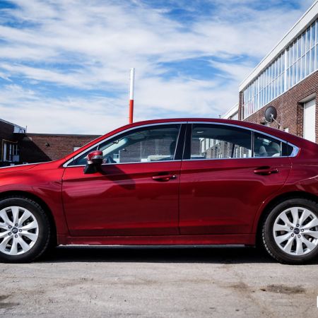“Confidence in Motion” is Subaru’s marketing catchphrase, and their strong sales year over year suggests that consumers agree with that sentiment. With the exception of the sporty BRZ, every vehicle in the Subaru lineup features all-wheel drive. The ever-practical Japanese car company is also known for achieving stellar safety performance, as they demonstrated when they gave DoubleClutch.ca a tour of the Insurance Institute for Highway Safety’s crash test facility in 2015. More recently, Subaru Canada sent over a 2016 Subaru Legacy 2.5i Touring Package, finished in a smart looking Venetian Red Pearl. The Legacy is the midsize staple in the Subaru lineup, and represents one of the few ways that a family sedan can be had with all-wheel drive under $30,000.