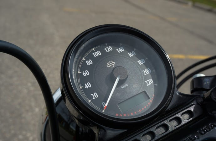 The instrument cluster looks great. The buttons are well spaced, the speedometer looks clean, and the digital tachometer with gear indicator is rather neat. Problems arise with the indicators though. It is worth noting that this is a source of frustration on every Harley-Davidson product currently available. The left indicator is by the left hand, and the right indicator is by the right hand. Why? Why would you do this? If I’m braking, blipping the throttle for rev-matches, and I need to indicate a right turn, my right hand is barely touching the handlebar anymore. Even if I’m simply rolling off the throttle and indicating a right turn, I might accidentally blip the throttle a little bit while I’m reaching for the indicator. Furthermore, the buttons have little to no feedback to let you know that you’ve turned off your signals.