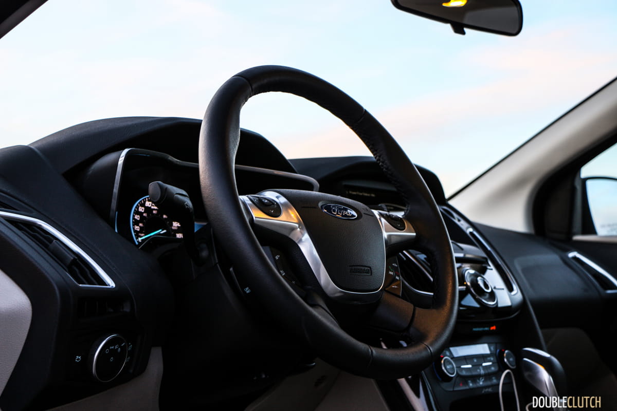Ford’s discrete representation of the Focus Electric’s existence is a bit ironic when compared with major competitors. The Chevrolet Volt (reviewed here) and the Nissan Leaf are nowhere near as understated as the Focus, almost bragging about their green nature. Meanwhile inside the cockpit, the Focus Electric is equally reflective of its gasoline brethren, as there are only minute differences there as well. All of the switchgear is exactly the same as the regular model, with the exception of some EV-specific instrumentation indicating green levels and such. Within the instrument cluster, there’s also a neat little display with graphics of butterflies, reminding you yet again that you’re doing your part to save the planet.