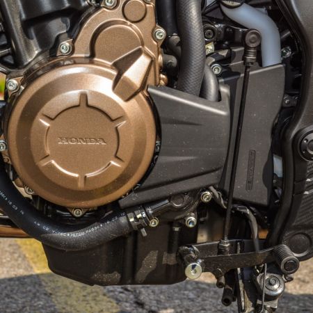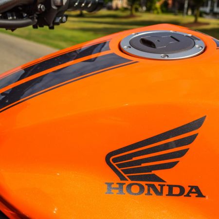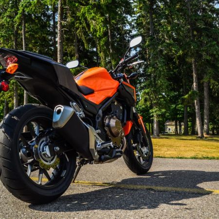 The Honda CB500F came out as a surprisingly capable little machine. In 2013 when it debuted, the bike was honestly rather drab. The appearances didn’t keep up with the feel of the 471cc parallel twin. It looked as cheap as it was. This has changed in 2016. Updated styling has given the bike a much greater aesthetic value. Tested in Candy Orange, it’s also available in a bold Matte Black Metallic. Both pallets include racing stripes down the centre, which I’m quite sure makes the bike go a tiny bit faster (at least I like to think so). For its price of $6799, it looks great. The bronze-ish gold covers on the engine add a good flair to the aesthetic, like a flower in the hair of a pretty girl. It works well.