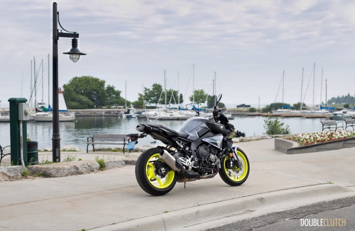 Typically stripping the fairings off a sport bike also strips away some insurance cost, meaning this bike here could be the performance (and insurance) bargain you’re looking for – maybe even more so than the R1S, especially considering the FZ-10’s $15,499 MSRP is $1,500 less than the streetable super bike. The FZ-10 is the alpha figure of the current FZ line-up – a trio of bikes including the FZ-07, FZ-09 and now the 10 – that have been wildly celebrated and enjoyed by those of us at DoubleClutch.ca, not to mention the growing legions of happy owners out there.