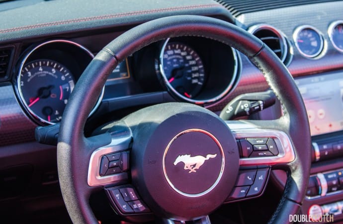 Under the hood of this particular convertible is the story-maker: Ford’s EcoBoost engine. We haven’t seen four-cylinder powertrains under the hood of a Mustang for a few decades, but with the advent of today’s technology, the four-cylinder Mustang is back. It makes some mighty claims, but would it hold up to the hype? Displacing 2.3L, it gets a twin-scroll turbo and intercooler attached, and also benefits from direct injection.