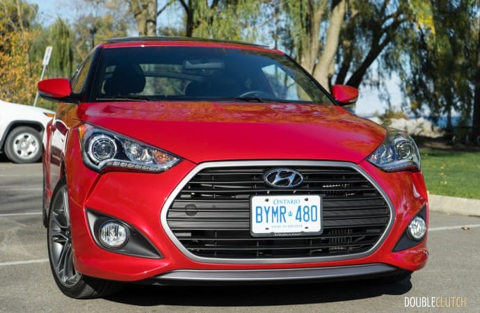 The Veloster Turbo is powered by a tuned version of the 1.6L turbocharged GDI inline four-cylinder engine, producing 201 horsepower and 195 lb-ft of torque at 1750RPM. This is quite the jump from the 132 horsepower the base model has to offer. Our tester was equipped with the seven-speed dual-clutch transmission (DCT) with flappy paddle shifters. A manual transmission is also available, and was the original offering on the Turbo – the DCT was new last year. Hyundai rates this car at 8.9L/100km city, 7.1L/100km highway, and 8.1L/100km total combined average. It’s very much possible to achieve these standards set by Hyundai, though for someone with a slightly heavy foot and a need for spirited driving, expect a combined average closer to 10L/100km.