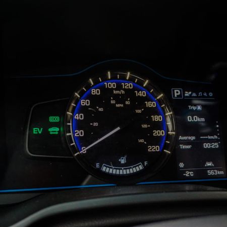 The IONIQ Electric has three levels of charging, which will depend on what your home or office power supply can handle. On a standard household outlet (120V), the car will take approximately 24 hours to fully recharge a depleted battery. Most IONIQ buyers will have level 2 chargers installed (240V), which drops the total charge time down to four hours, and the level 3 “superchargers” with 450V power can juice the car up in just 30 minutes. Hyundai has also included a battery temperature management system that can pre-warm the battery to ensure maximum battery performance. Hyundai estimates a total driving range of 200km for this vehicle under ideal circumstances.