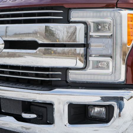 Whereas the outgoing Super Duty series trucks were nice, the lacked some luxury amenities, which competitors boasted quite well. The exterior design is where it truly shows how nice of a job Ford has done producing the Super Duty. New optional quad-beam LED headlamps, fog lamps, and tails ($1,200) act as the new signature design that unmistakably distinguishes this F-350 from the herd. An available Chrome Package ($1,350) adds some shiny new 18-inch chrome PVD wheels, body-coloured door handles with chrome inserts, dual chrome exhaust tips, chrome pickup bed tie-down hooks, two front chrome tow hooks, and unique chrome mirror caps.