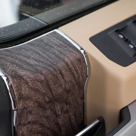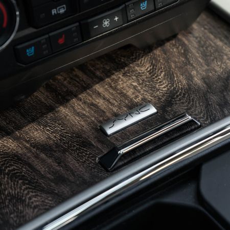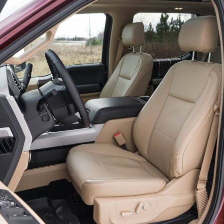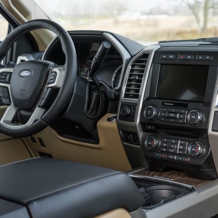 Now, this isn’t to say that the F-350 lacks comfort. Passengers can enjoy ample legroom thanks to the larger Crew Cab, which is three inches longer than the outgoing model. Premium Camel leather seats embrace passengers in a soft luxurious manner, while black leather along with satin wood accents help contrast the lighter colour of the interior. The front bucket seats prove to be as comfortable as well, with the option of heating or ventilation. The 10-way power adjustable seats along with power-adjustable pedals make it easy for any driver to find a good driving position.