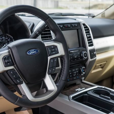 Of course, a giant truck would be nothing without a properly large engine underneath the hood to get it moving along. The F-350 comes standard with a 6.2-liter gasoline V8 that puts out 385 horsepower and 430 lb-ft. of torque. Those looking for an increase in power can opt for the 6.7L PowerStroke diesel engine with 440 horsepower and an immense 925 lbs.-ft. of torque. Our tester, equipped with the diesel engine, mated to the TorqShift six-speed automatic gearbox, felt responsive and very smooth. The gasoline V8 would be acceptable in most general use cases, however this diesel motor is the optimal choice for any heavy lifting, thanks to the staggering amount of torque available when hauling substantial loads.