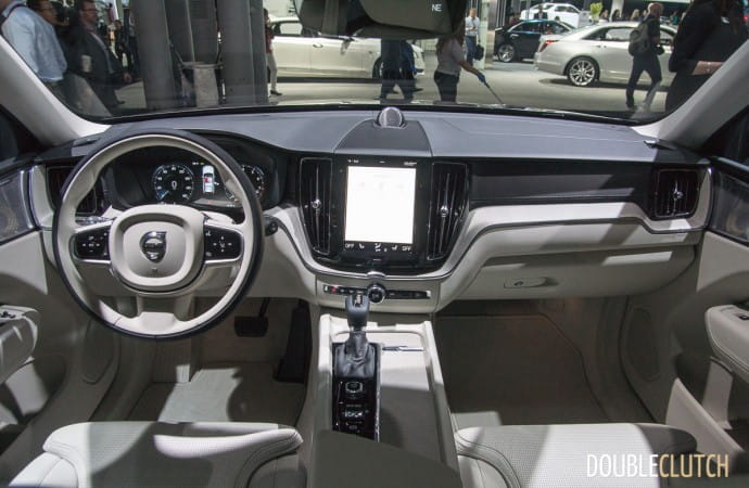 If you’re thinking the XC60 is essentially an XC90 at about 66% scale, you’d be more or less right. What’s important is that it is built on the excellent Volvo “SPA” modular product platform. This means that it shares a good deal of engineering with its bigger brother, but in a smaller, two-row, five-passenger body. Hot styling cues such as the Thor’s Hammer LED daytime running lights make another appearance, though the side profile doesn’t stray far from the usual two-box layout common to essentially all crossovers. Out back, the taillight design borrows from the V60 (reviewed here) and V60 Cross Country, rather than the XC90. Bottom line, the new XC60 is a sharp-looking CUV that fits right in with the rest of today’s Volvo family.