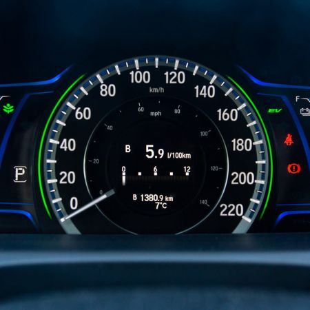 The Honda Accord Hybrid is rated at 4.9L/100km in the city, 5.1L/100km on the highway, and 5.0L/100km in a combined cycle. Right off the bat, these numbers are quite a bit better than the elephant in the room: the Toyota Camry Hybrid – to the tune of almost 20% in certain situations. Throughout our (extremely cold) week with the Accord Hybrid, we managed an indicated average of 5.9L/100km. The outside temperature has a significant influence on real-world efficiency, simply because using the interior heater will fire up the engine. In a springtime test, it was actually very easy to attain numbers closer to the 5.0L/100km range. The Accord Hybrid will hold 60L of regular 87-octane fuel.