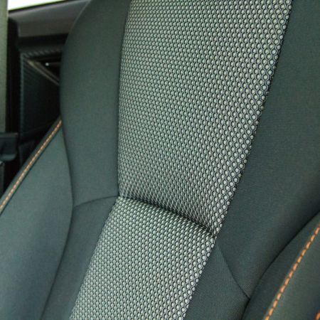 The interior of the new Crosstrek holds true to Subaru fashion of function over form, although efforts have been made to make the space look and feel slightly more upscale than its predecessor. The Sport model comes with comfortable and supportive heated front seats finished in two-tone premium cloth with orange stitching. The stitching is carried on throughout the interior including on the dashboard and the leather-wrapped steering wheel. From a materials standpoint, that’s where the positives end as the hard black plastics and faux carbon fiber accents used just about everywhere else are not up to the same standards that can be found in competitors such as the Buick Encore or the Mazda CX-3.