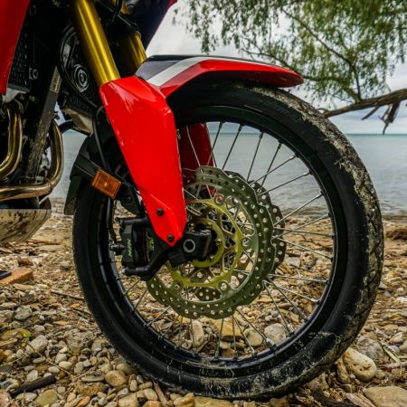 Some notable things to mention that Honda got right include the bike’s geometry. All the dimensions come together nicely, making for a comfortable and confidence inspiring ride that is the perfect blend for on and off-road riding. The large 21” front wheel also works in the Africa Twin’s favour for off-roading. Honda also enables the rider to control traction management with HSTC (Honda Selectable Torque Control). This includes three settings; but more importantly you’re able to turn it off. You’re also able to turn off the ABS to the rear wheel for when off-roading dictates.