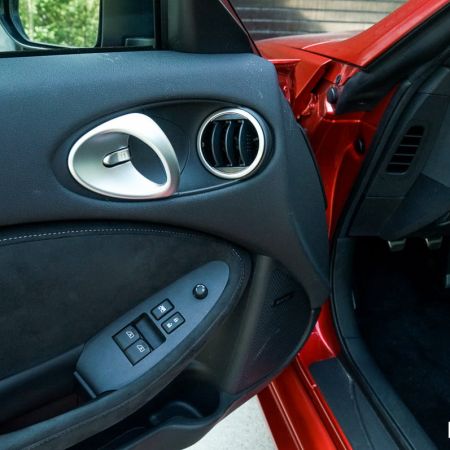 Finished in a ticket-me shade that Nissan calls Passion Red, the Touring Sport Coupe trim was the second from the top for the 370Z, and bested only by the NISMO version (reviewed here). Price at $44,298, it’s a good bit more expensive than the $29,998 entry-level model, but includes things like snazzy 19-inch RAYS forged alloy wheels, Bose Audio, navigation, automatic rev matching for manual-transmission equipped cars, bigger brakes, and a viscous type limited slip differential. The only options are an available seven-speed automatic transmission, which adds $1,500 to the total, and the test car’s Passion red ended up costing $750 extra. Expect prices to fluctuate by a few hundred dollars depending on colour choices.