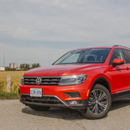 Clad in a cheery bright Habanero Orange metallic paintjob and filled out with a boxy, bulked out body, the all new 2018 Volkswagen Tiguan Highline is an impressive looking vehicle that we took for a road trip out to Calabogie Motorsports Park and back. Considering this is supposed to be the smallest crossover in Volkswagen’s lineup, I paused as I parked it next to a previous generation Tiguan (reviewed here) to reflect on the differences. The older vehicle feels softer, and curvier versus the cuboid steel shape that the new Tiguan has.