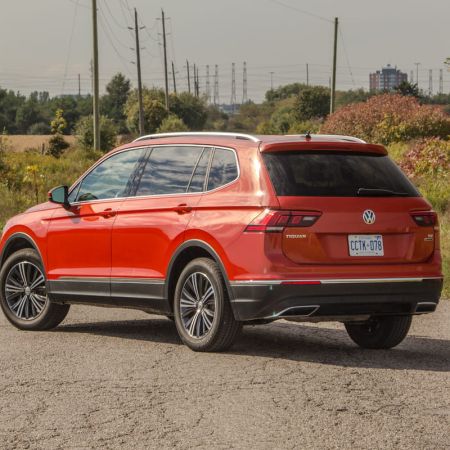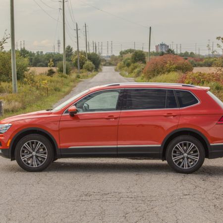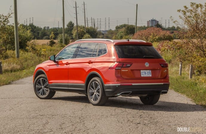 Clad in a cheery bright Habanero Orange metallic paintjob and filled out with a boxy, bulked out body, the all new 2018 Volkswagen Tiguan Highline is an impressive looking vehicle that we took for a road trip out to Calabogie Motorsports Park and back. Considering this is supposed to be the smallest crossover in Volkswagen’s lineup, I paused as I parked it next to a previous generation Tiguan (reviewed here) to reflect on the differences. The older vehicle feels softer, and curvier versus the cuboid steel shape that the new Tiguan has.