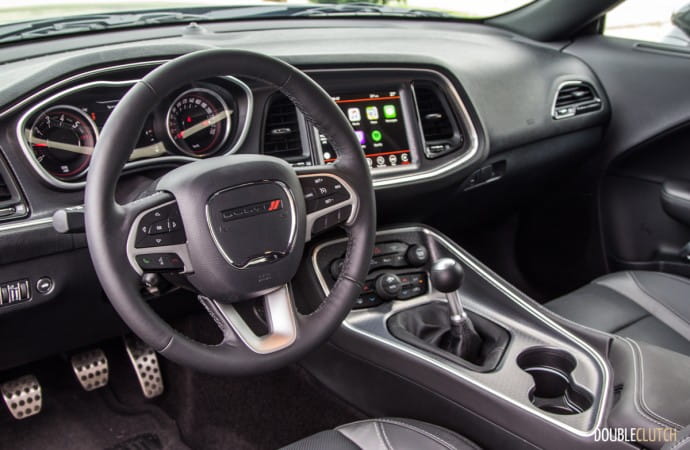 One gripe we have is the foot-operated parking brake. A manual transmission car needs either a hand-operated or electronic application. Those who park the car in first gear will need to make a habit of shutting the car off before engaging the parking brake, as the driver’s left foot is required to engage the brake. Personally, my routine is to put the car in first, engage the parking brake, then shut it off. Doing so will stall out the Challenger as you must remove your foot from the clutch in order to kick down the parking brake “pedal”. Hopefully this is rectified for the next model.