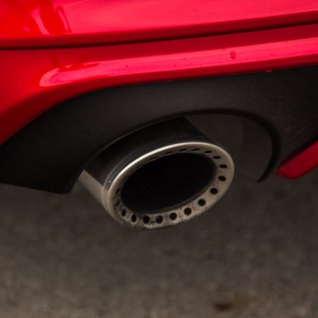 As you open the door, you’ll notice that the heated leather seats have lovely quilted bolsters and though they are superficial since they don’t really offer any performance or comfort increase, they are a welcome change to flat leather. The red theme continues with bright red stitching running along the edges of the seat, the center armrest and the inside of the steering wheel. Sadly, it does not continue along the door side wall which are instead clad with black soft touch plastics with chrome accents and a wonderfully comfortable leather elbow pad. My only gripe is that the wheel itself seems a little thin – a slightly thicker wheel would’ve been much more appropriate to match this car’s capabilities.