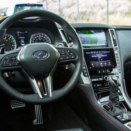 To counter the sheer brilliance of the power delivery and driving dynamics, the steering is the biggest let down of the vehicle. Equipped with the second generation of what Infiniti calls “Direct Adaptive Steering”, wheel resistance will initially feel super light at a standstill and then artificially stiffen up along with the response once you get moving. This seems good on paper and even on the initial city test drive but upon closer inspection, its seemingly masking what is effectively a large turning diameter of 37.4 feet. This is largely due to the fact that the the wheels restrict the turning angle of the front wheels to one full 360 degree turn of the wheel.