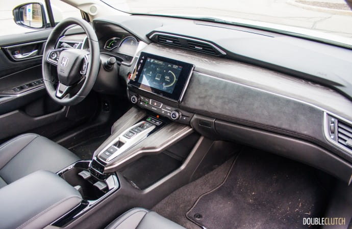 This is a good thing as the Clarity offers extremely roomy cabin space as well as trunk storage that’s almost identical to the Accord. With my 5’10” frame in the driver’s seat, I still had plenty of room in the back for two full-sized adults to fit very comfortably. Finding a good driving position is a simple task thanks to the six-way manual adjustable seats that feel straight out of the Civic. They’re comfortable, have plenty of adjustment and come standard with heating for those who enjoy toasty buns. Vision lines are clean with minimal frontal view blockage and aside from the thick B-pillar (a standard gripe these days thanks to roll over safety laws), being aware of your surroundings comes easy.
