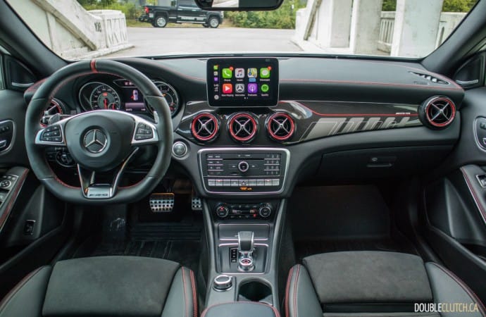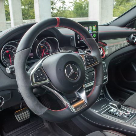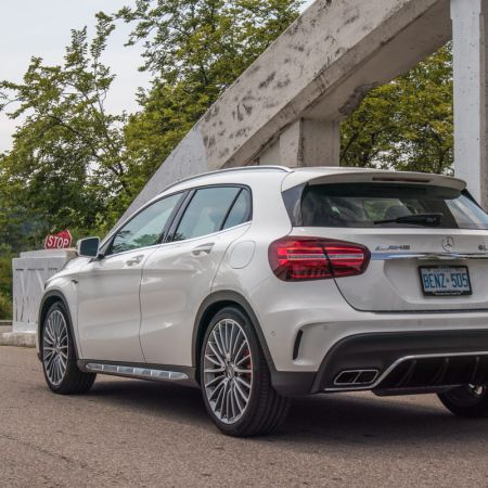 Mercedes-AMG rates the 2018 GLA 45 for 10.7L/100km city and 8.3L/100km on the highway. This amounts to a combined estimate of 9.6L/100km. Our week consisted of roughly 600km of testing in average conditions, and took place on the required premium fuel. The average came to 10.3L/100km in summer conditions with liberal use of the air conditioning. One thing we would like to see is an increase in the small 50L fuel tank, which will need to be refilled frequently if your commute isn’t almost entirely highway.