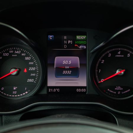 Average fuel consumption will vary greatly depending on how often the vehicle is plugged in, and with every individual commute. We made full use by plugging in the GLC at home every night, and at multiple public charging locations throughout our test week. Combining this with a conservative driving style and the required 91-octane fuel, we observed 8.3L/100km in the city over the course of our test. This surpasses the 8.5L/100km highway rating of the GLC 300, and is significantly better than the 10.6L/100km we averaged with the gasoline model.