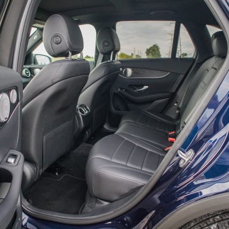 The interior of the GLC 350e is virtually the same as the standard GLC 300. This means it has a beautiful design and excellent materials throughout. Our test vehicle had the Dark Ash open pore wood, which looks and feels great. Piano black is also available, but we have driven models equipped with it in the past and the tendency to fingerprint and scratch is much higher. The seats themselves are very comfortable and two six-foot adults had no problems sitting in the rear. The cargo area floor is raised slightly to store the battery packs, but the GLC can still hold 395L with the rear seats in place and 1,445L with them folded.