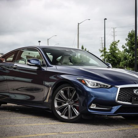 This 2018 Infiniti Q60 Red Sport 400 is a descendant of the now infamous Infiniti G35 that captured hearts and made big waves in the sporty car game back in the mid-2000s. Unlike the G35 though, the Q60 comes in three very different flavours, starting with a fairly pedestrian 2.0L four-cylinder, a well-equipped twin-turbo 3.0L V6 with 300 horsepower, and a true performance model known as the “Red Sport 400” with the same twin-turbo V6 now boosted to 400 horsepower and boasting a slew of brake and chassis performance upgrades.