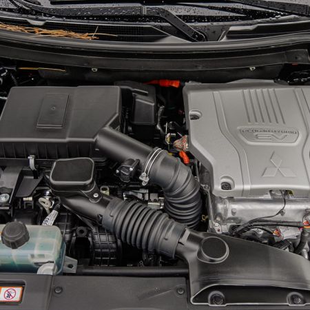 As the model name suggests, the Outlander PHEV has a hybrid powertrain that is powered by both a 2.0L gasoline engine that produces 117 horsepower and 137 lb-ft. of torque at 4,500RPM, as well as a Twin-AC synchronous permanent magnetic motor which produces 80 horsepower to all four wheels, and 101 lb.-ft. and 144 lb.-ft. of torque to the front and rear wheels, respectively. These motors are paired with a single speed, fixed reduction gear transmission, delivering instant electric power to all four wheels using a Super All-Wheel Control (S-AWC) system.