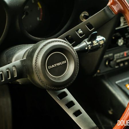 Continuing on with the mechanical feels, the old Datsun’s steering is unassisted, leaving out power assist systems that tend to completely drain on the connection between the wheel and the road. Like the shift knob, the steering wheel is also wooden, and the large diameter, thin rim design helps with maneuverability when strong-arming it. When cornering, every piece of information from the road passes through the chassis and into your fingertips, and it’s very easy to hustle the 240Z knowing that the car is telling you everything you need to know about what the front wheels are doing.