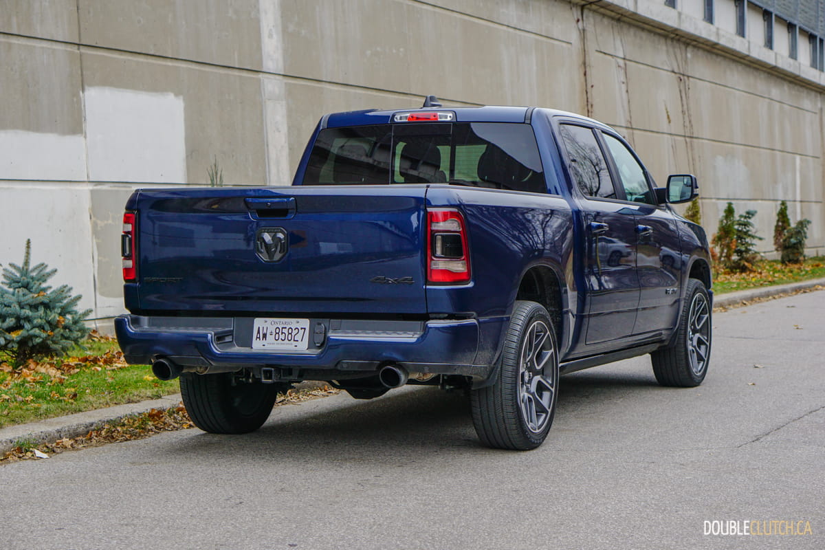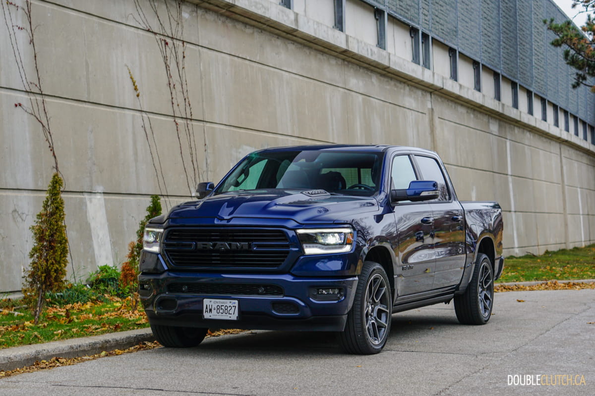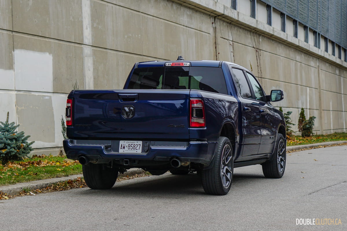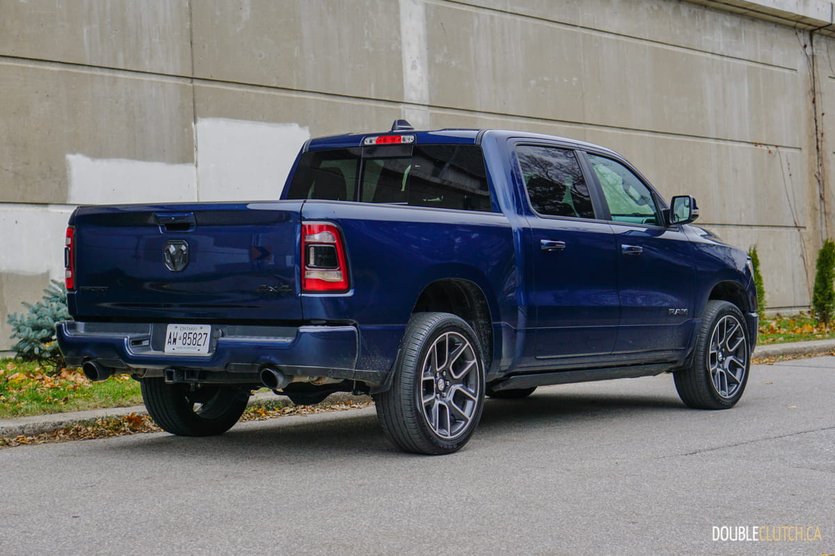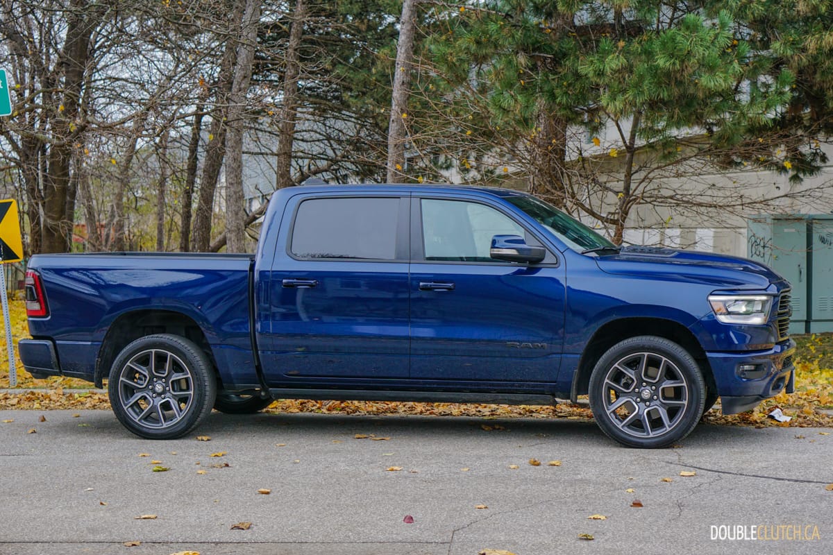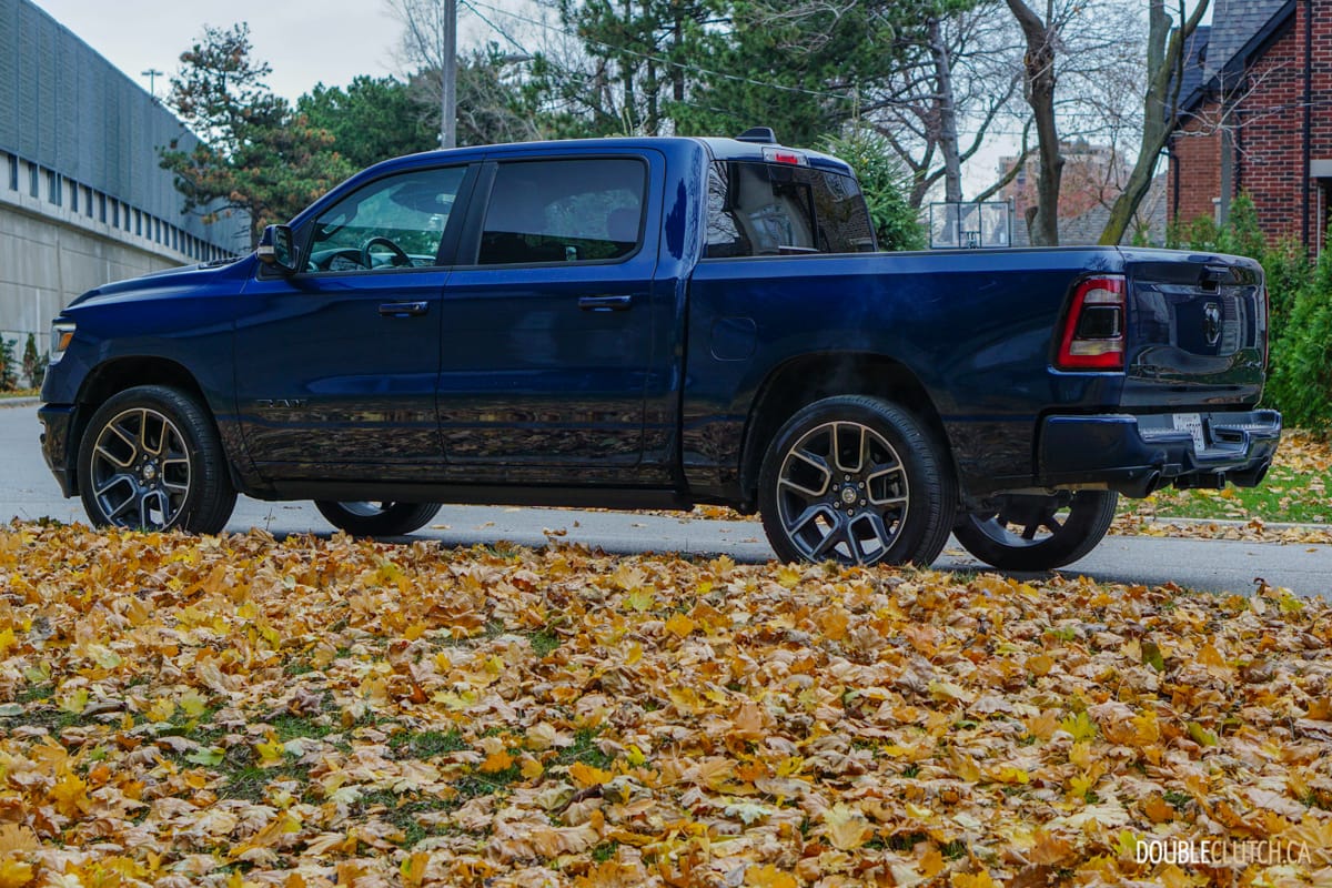 The Canada-only Sport trim (reviewed here) brings unique exterior and interior styling to the Ram. This includes a lot of body coloured parts, heated front seats, and standard 20” wheels starting with an MSRP of $60,795. This particular Ram Sport was optioned up even further with leather seats ($1,695), Advanced Safety Group ($2,300), Level 2 Equipment group ($1,025), anti-spin rear differential ($525), powered dual-pane sunroof ($1,595), nine-speaker amplified sound system with subwoofer ($495), air suspension ($1,895), and more for a total of $75,020.