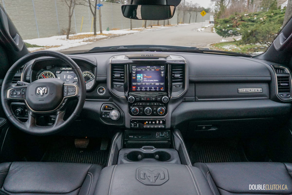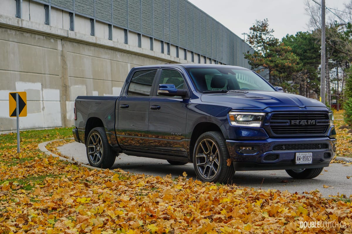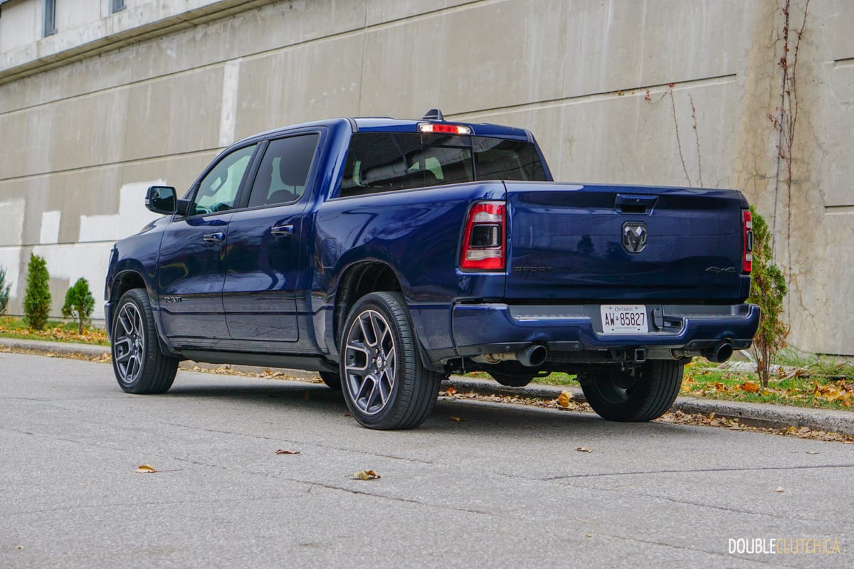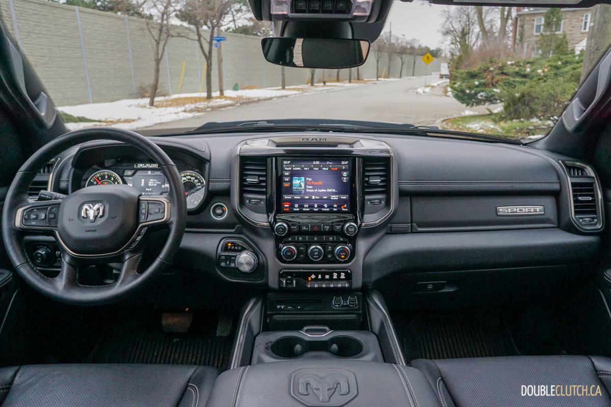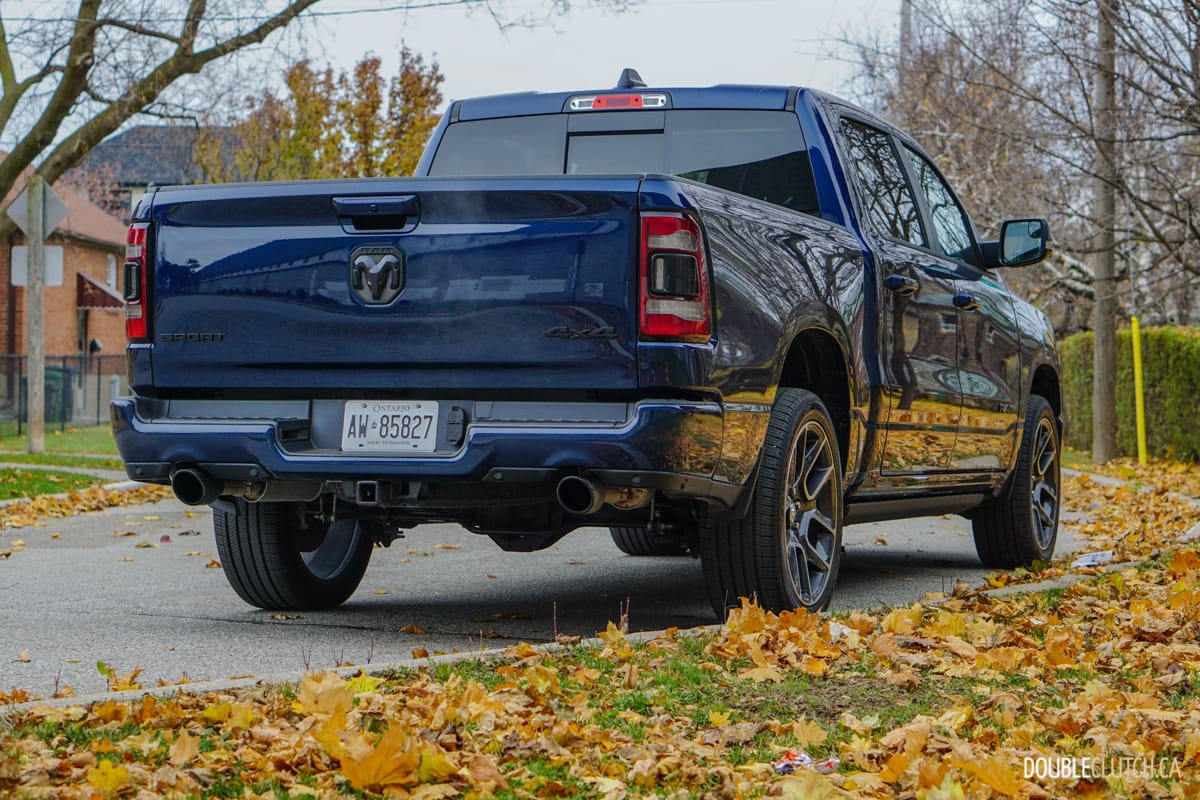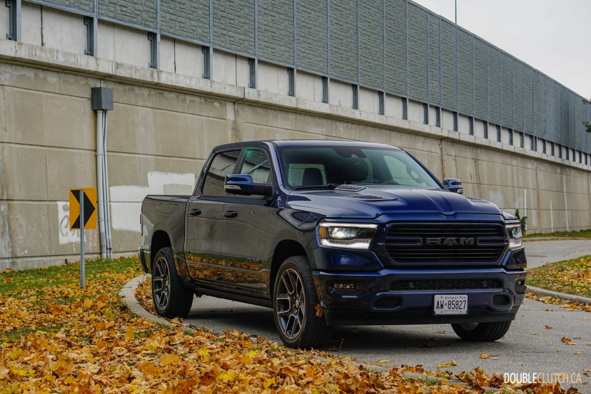 The Canada-only Sport trim (reviewed here) brings unique exterior and interior styling to the Ram. This includes a lot of body coloured parts, heated front seats, and standard 20” wheels starting with an MSRP of $60,795. This particular Ram Sport was optioned up even further with leather seats ($1,695), Advanced Safety Group ($2,300), Level 2 Equipment group ($1,025), anti-spin rear differential ($525), powered dual-pane sunroof ($1,595), nine-speaker amplified sound system with subwoofer ($495), air suspension ($1,895), and more for a total of $75,020.