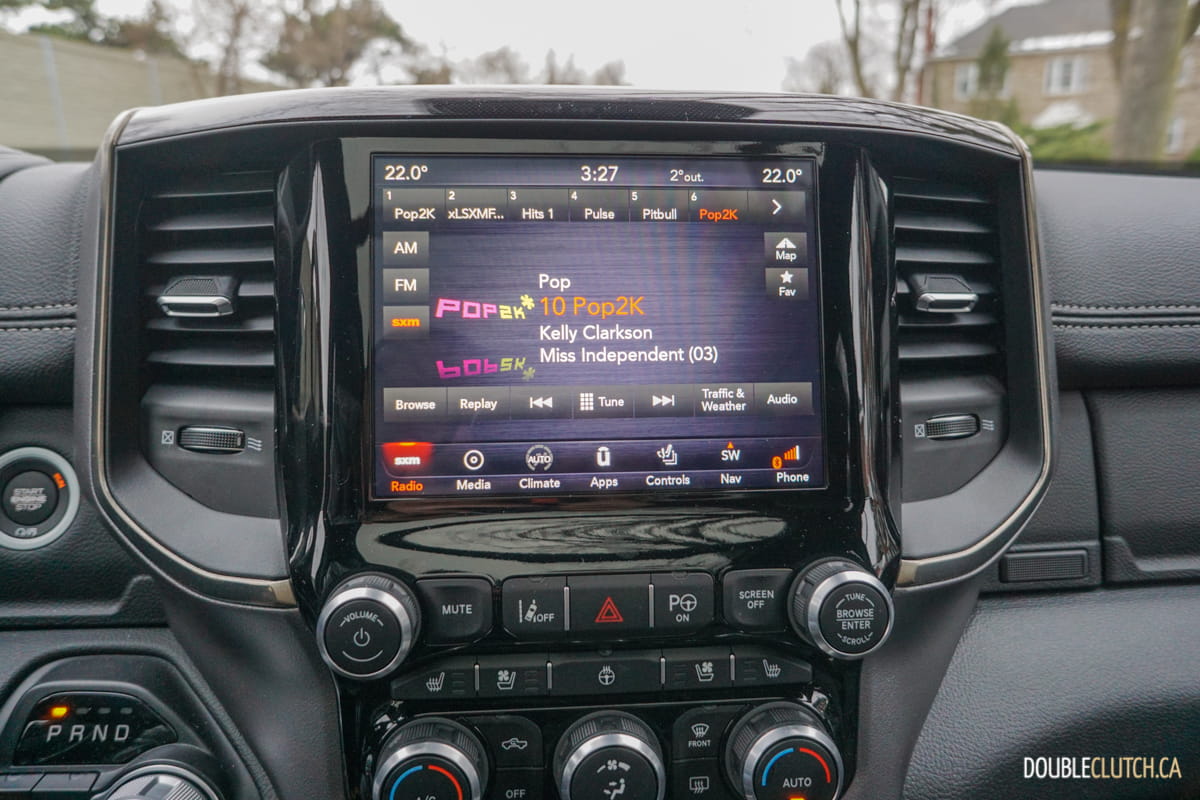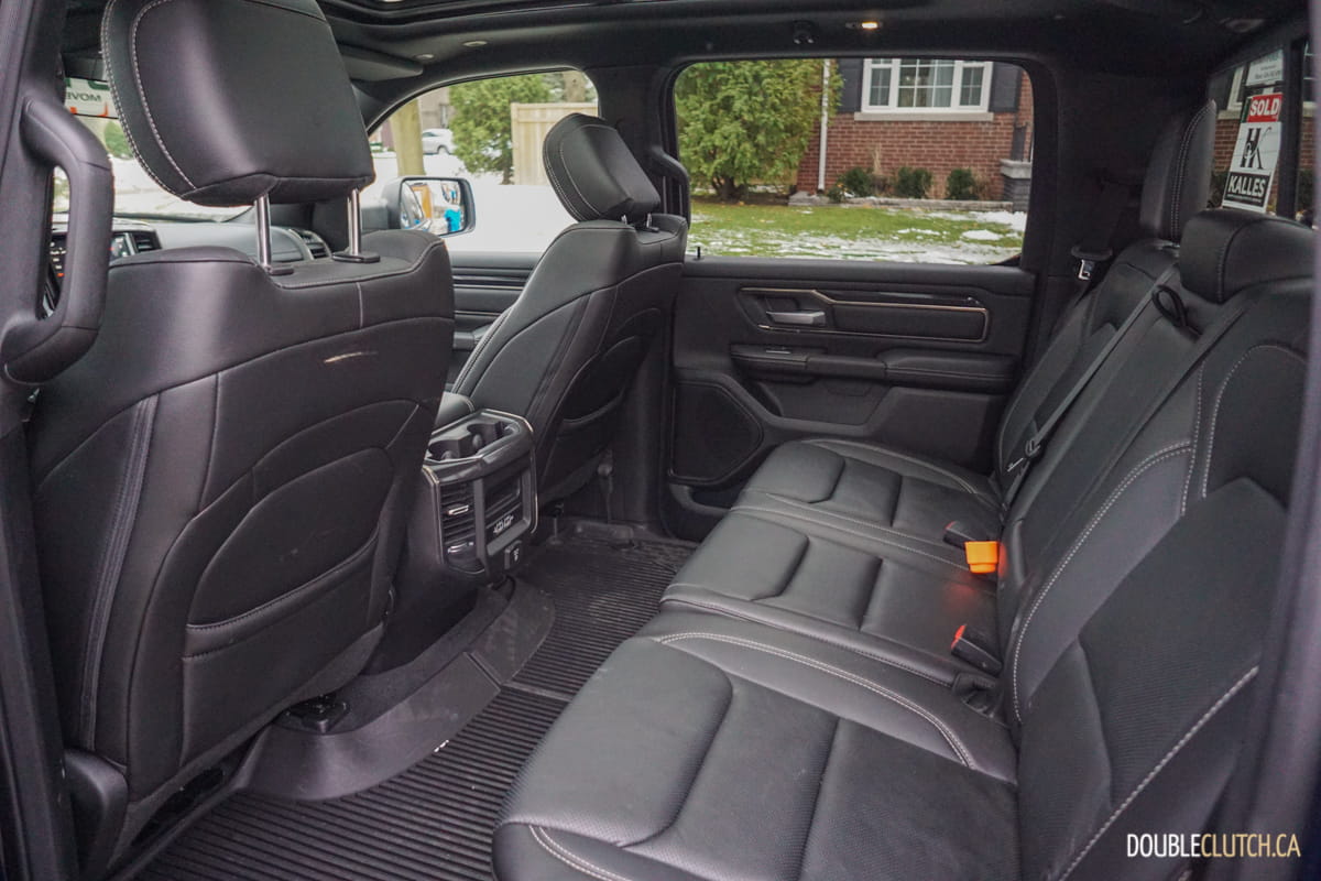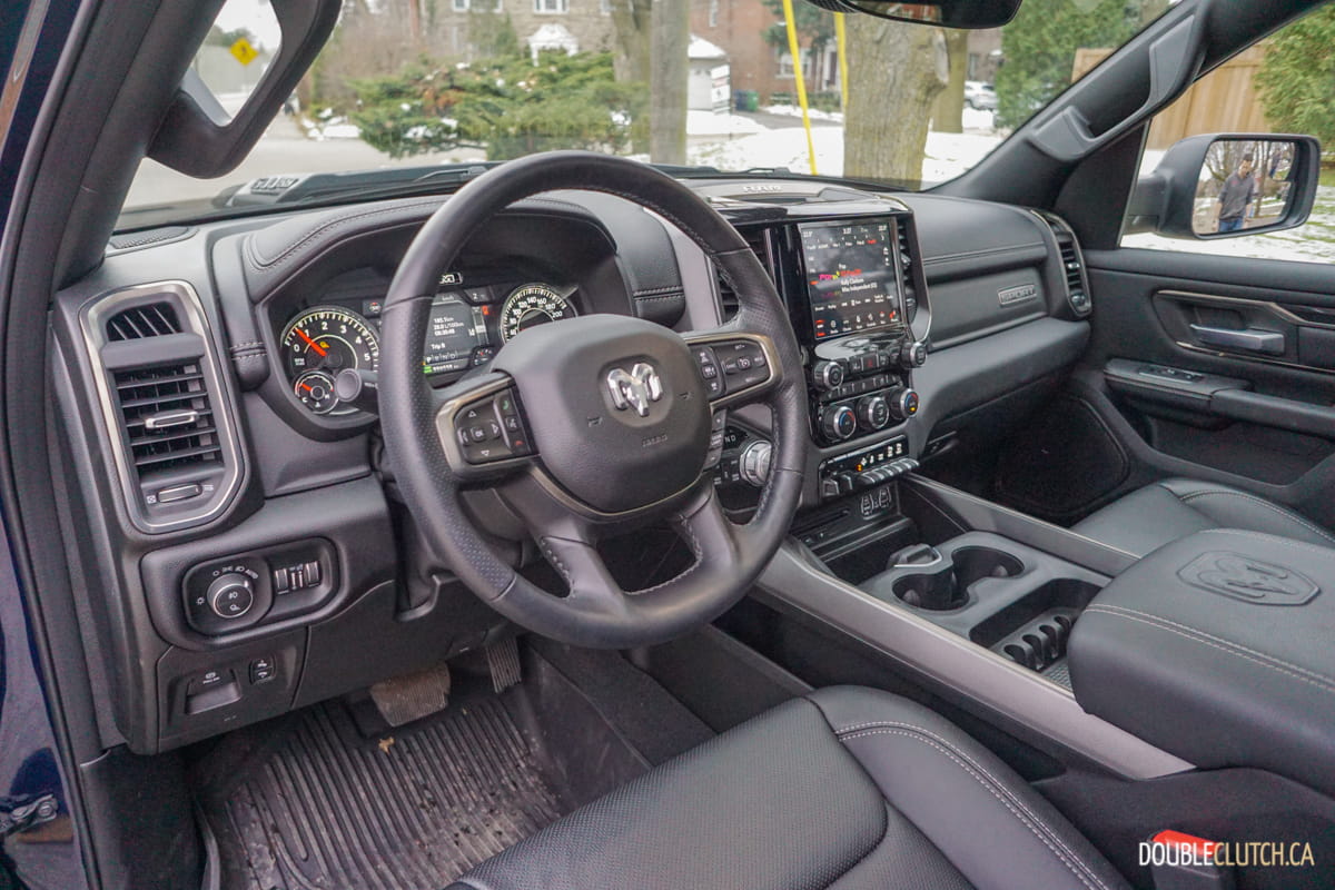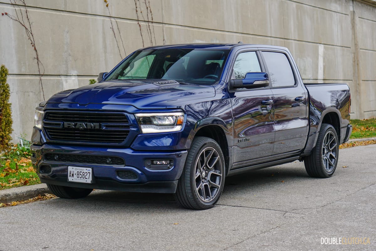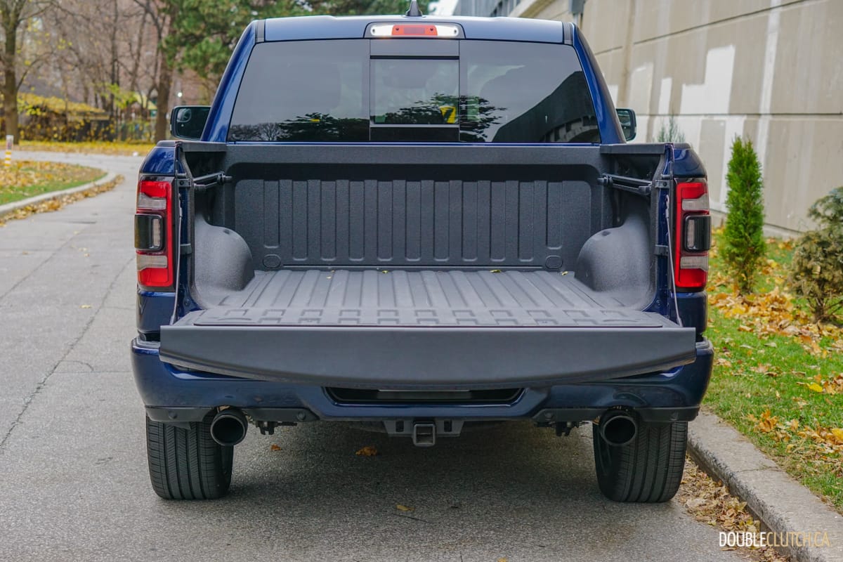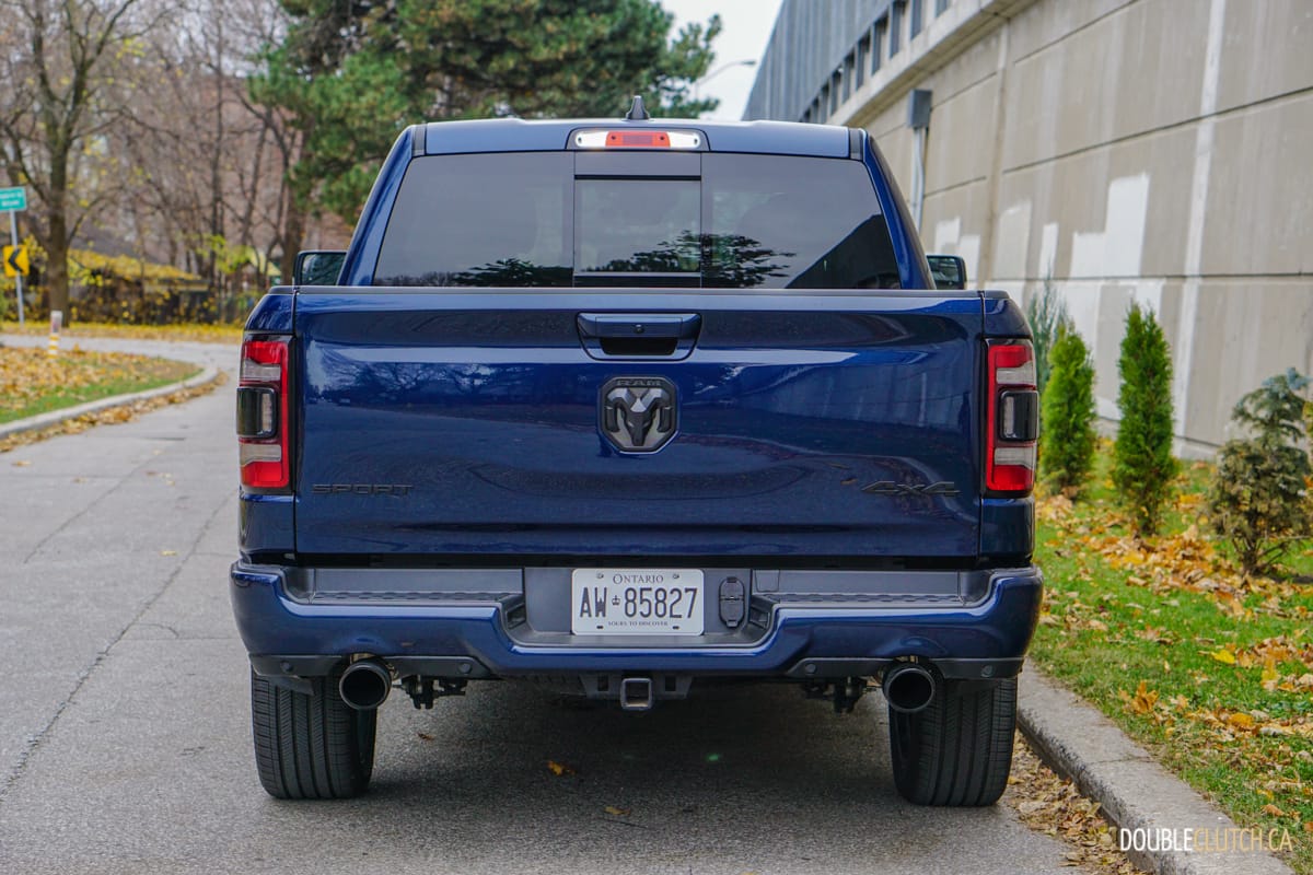 The Canada-only Sport trim (reviewed here) brings unique exterior and interior styling to the Ram. This includes a lot of body coloured parts, heated front seats, and standard 20” wheels starting with an MSRP of $60,795. This particular Ram Sport was optioned up even further with leather seats ($1,695), Advanced Safety Group ($2,300), Level 2 Equipment group ($1,025), anti-spin rear differential ($525), powered dual-pane sunroof ($1,595), nine-speaker amplified sound system with subwoofer ($495), air suspension ($1,895), and more for a total of $75,020.