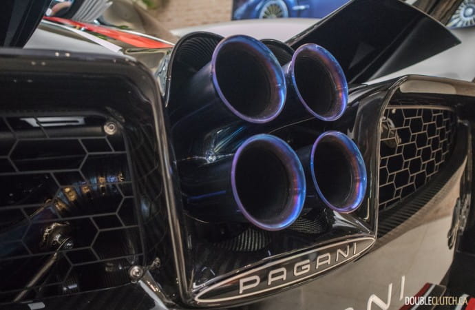 Even at first glance, it’s clear that the Huayra Roadster BC is something special. If the stripes and scoops aren’t a dead giveaway, the prominent active and passive aerodynamic features will be. The side mirrors are artfully delicate and serve in stark contrast to the brutality of the front dive planes and massive fixed rear wing. Speaking of artfully delicate, check out the the emblems of Horacio Pagani’s signature. They’re each formed out of a single chunk of billet aluminum, while visible bolts are made out of titanium and have the Pagani emblem stamped into each of them. The insane craftsmanship extends into the Huayra Roadster BC’s structure itself. Mere carbon fibre was simply not enough, so Pagani uses Carbotitanium and Carbo-Triax for the monocoque for incredible rigidity and lightness. It truly is a sight to behold.