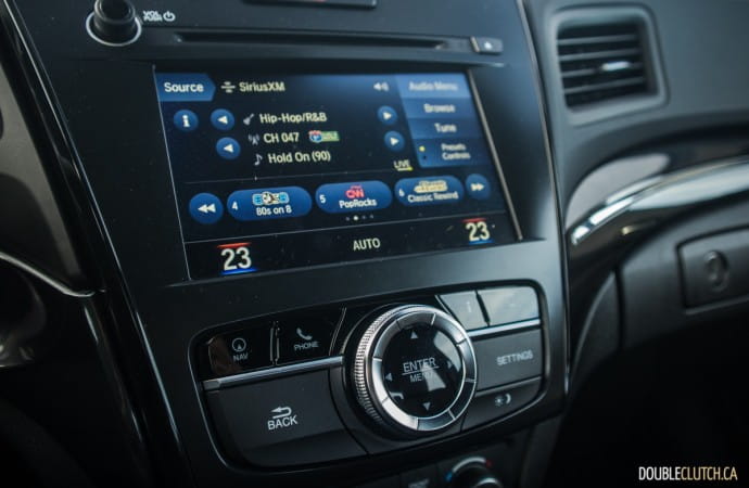 The inside of the ILX is an agreeable place to spend time, but the updates are certainty less apparent, which does leave the cabin feeling a bit dated compared to the latest Civic, which is a shame. For starters, the infotainment system, split between two screens, is one of the most frustrating systems I’ve encountered in recent years. There’s a big knob mounted in the center stack, but it only controls the map in the upper screen. The lower screen is touch operated only and is cluttered, difficult to hit the right buttons, and it’s missing information.