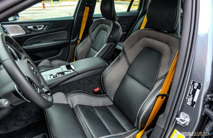 An extra flap on the driver side front fender covers the plug in outlet – yes, this is also a plug-in hybrid. As a PHEV; the V60 T8 is supposed to get around 45 kilometers out of pure electric range before transitioning into full hybrid mode. With the cold temperatures during our test, use of the heater, heated steering wheel and seats, we observed 26 kilometers before it switched to the combustion engine. The ability to regenerate charge to the battery while driving and hold that charge for when you need it is a fantastic option.