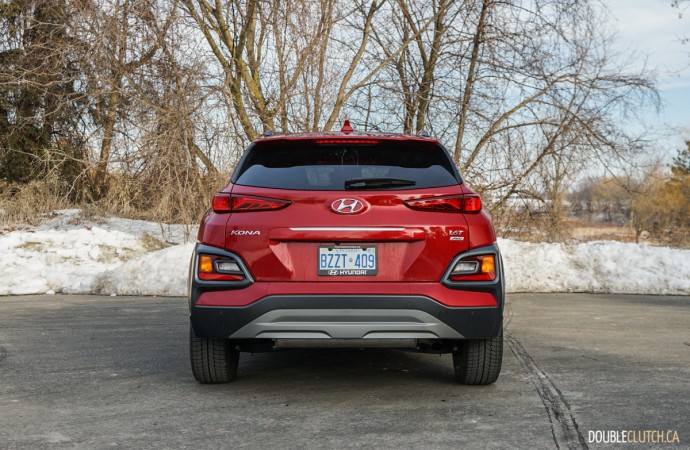 The Kona’s added ride height over, say, an Elantra (reviewed here) means there is a bit of body roll, however it’s very well controlled. Unfortunately though, the problem here is that to achieve the impressive handling of the Kona without adaptive dampers results in an unnecessarily stiff ride, amplified by the up-sized wheels on our Ultimate trim tester. A car that’s meant for conquering the city core should be able to handle rough city streets with a bit more grace. While highway cruising exhibits excellent damping with no unnecessary body movements, urban crawling isn’t quite as good.