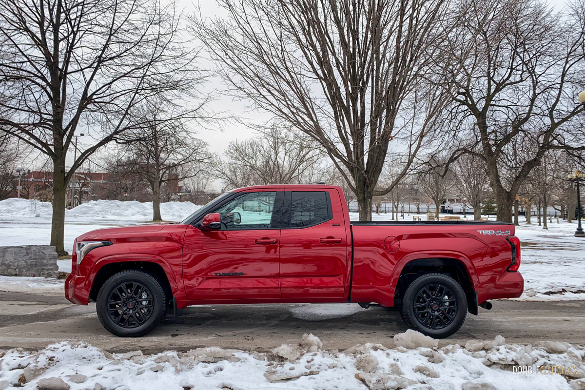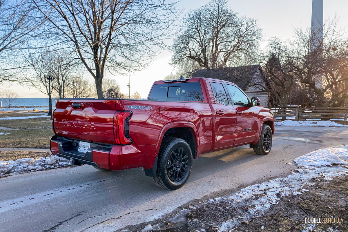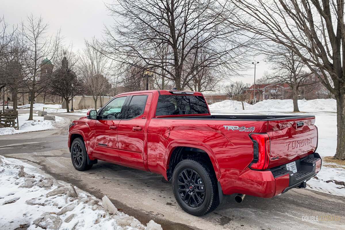 Toyota reports fuel consumption at 13.1L/100km city and 10.1L/100km highway, for an average of 11.8L/100km. Despite our best efforts to be fuel efficient we ended up consuming fuel at a rate of 14.6L/100km. More than half of our mileage were highway using the radar cruise control, sipping fuel in Eco mode in 2WD. At least Toyota has mercifully tuned the new Tundra to use 87 octane to fill its 85-liter tank.