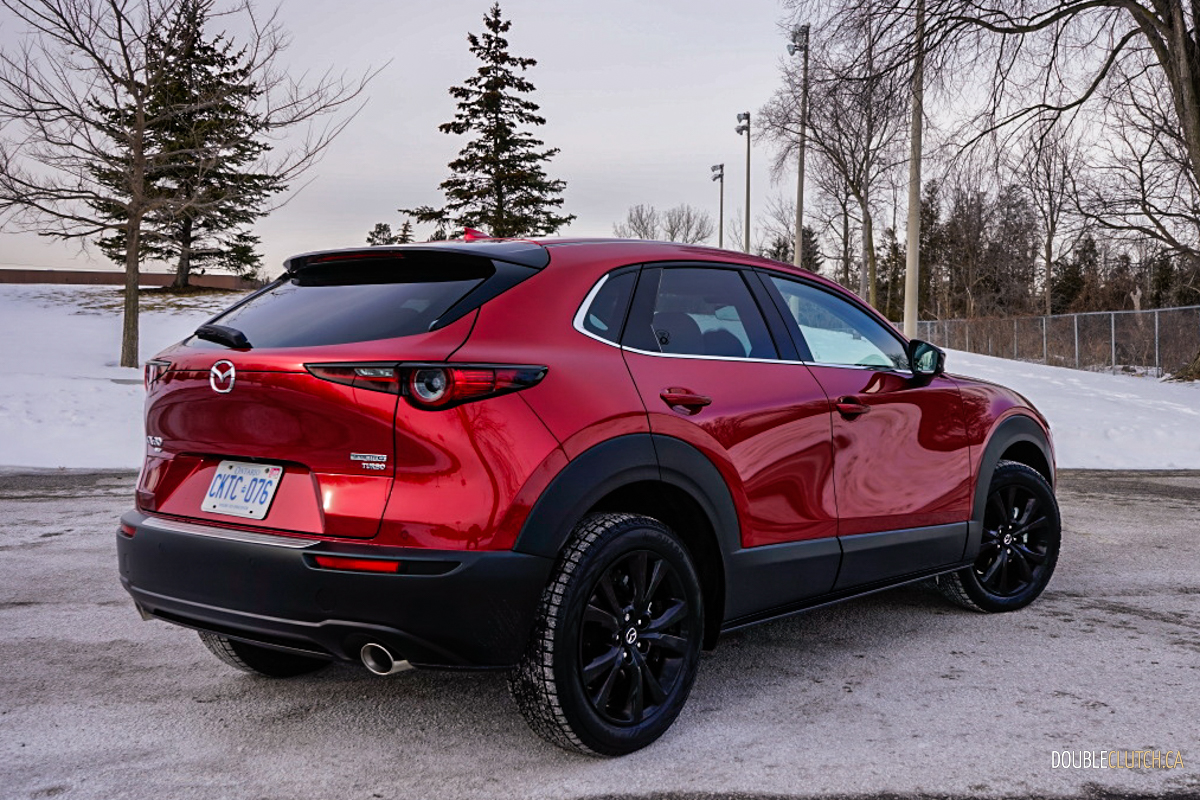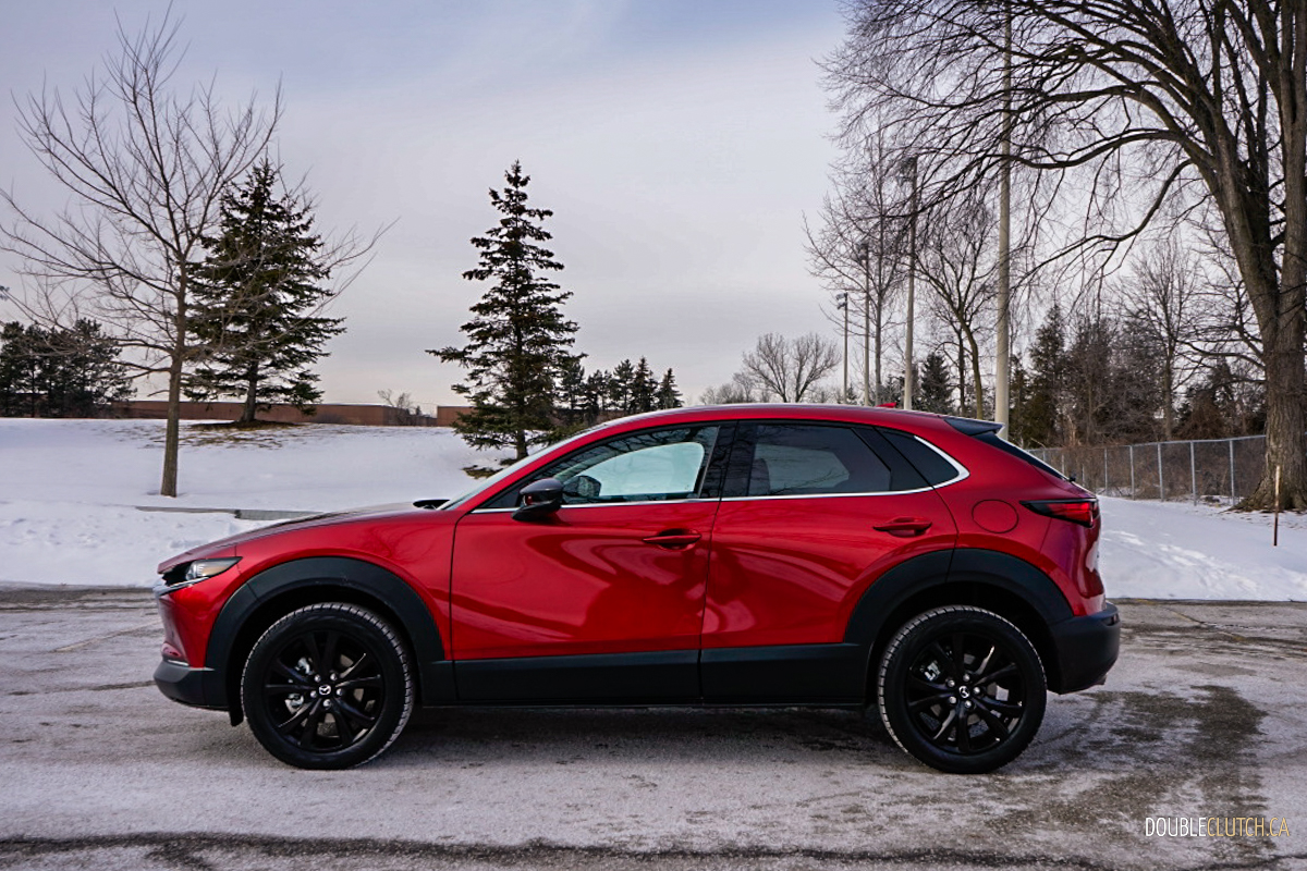 Fuel economy is rated at 10.5L/100km in the city and 7.9L/100km on the highway for a combined figure of 9.3L/100km. Our observed figure came in at a higher than expected 11.0L/100km. Contributing factors to the higher thirst for fuel are cold weather and our CX-30 tester being brand new with less than 100km on the clock. We expect the figures to return closer to the rated numbers over time. Only regular fuel is required for the CX-30 Turbo, but note that power output decreases to 227 horsepower and 310 lb-ft. vs the posted figures made using premium 93-octane gasoline.