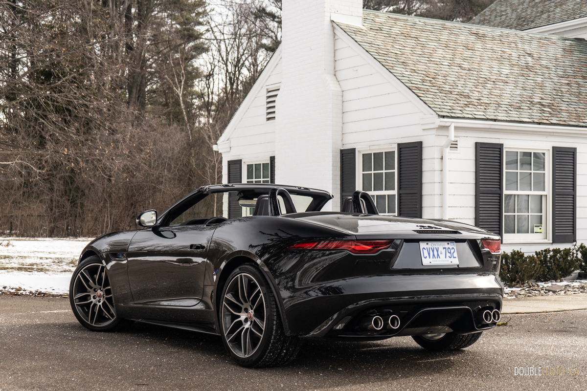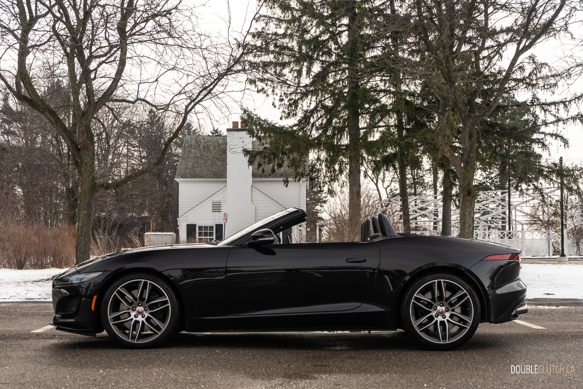 That said, the 2022 model is only available with two variants of the 5.0-liter supercharged V8. The P450 model tested here is the de-tuned version, offering “just” 444 horsepower and 428 lb-ft. of torque, and hooked up to the eight-speed automatic. This one is rear-drive, though the P450 is available with all-wheel-drive for an extra $10,000. Jaguar claims a 0-100km/h sprint time of just 4.6 seconds, which is pretty quick for the droptop kitty, and as expected, this comes with a truly theatrical soundtrack.