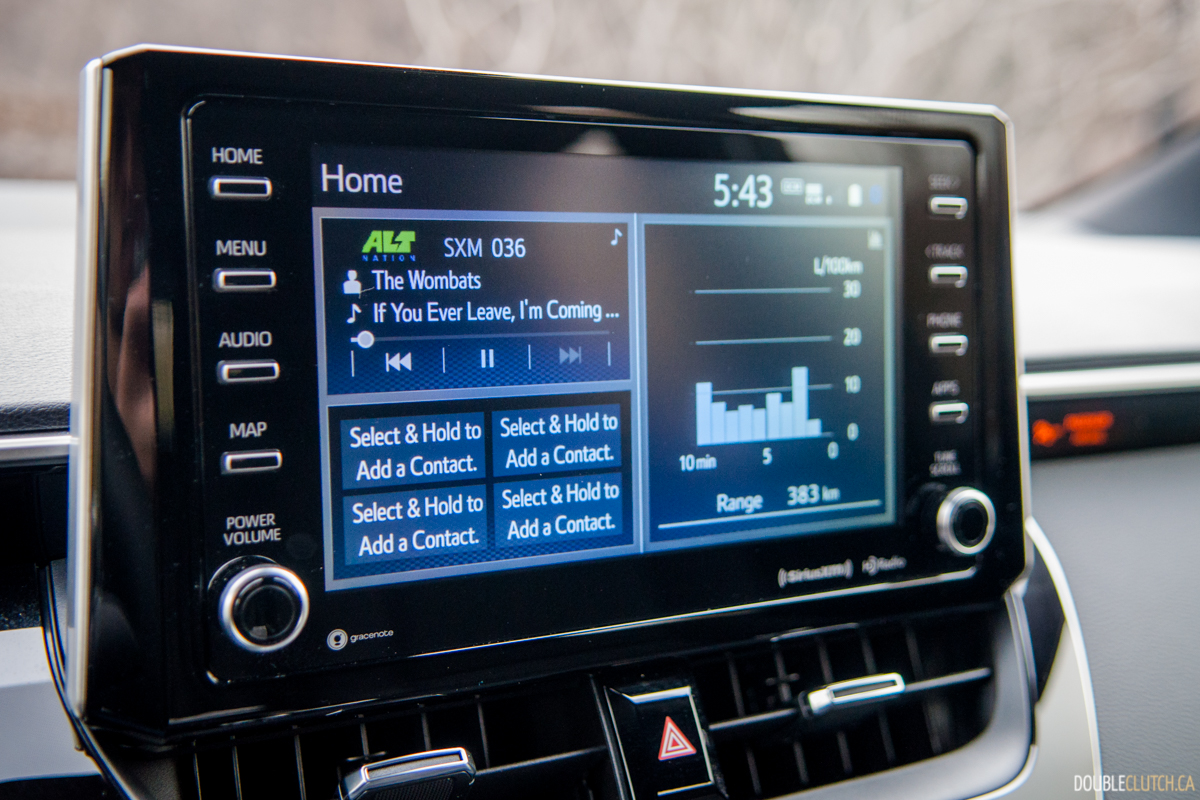 Perhaps the only drawback to the Corolla hatchback’s driving experience is fuel economy. It’s not a gas-guzzler by any means; it’s officially rated at 8.4 L/100 kilometres in the city, 6.7 on the highway, and 7.6 combined. We averaged 8.6 in the real world over mostly city driving, with a couple of highway stints here and there. It’s not bad by any means, but you can’t help but expect better numbers from something so sluggish in a straight line. Must’ve been all the wide-open-throttle pulls necessary to merge onto the highway. If you’re willing to sacrifice fun and engagement for fuel economy, the CVT is the way to go.