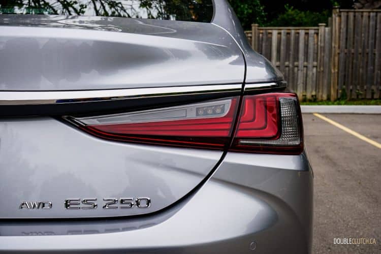 Fuel economy for the ES 250 AWD is rated at 9.5L/100km in the city and 7.0L/100km on the highway for an average of 8.4L/100km. Our observed consumption for the week came in at a higher than expected 10.5L/100km for our city-heavy commute, and we attribute that to the heat wave forcing us to keep the air conditioning on high all week as well as our active search for power for evaluation purposes. The real bonus here is regular grade gasoline is accepted for the 60-litre tank which offers meaningful savings not typically found in luxury vehicles these days.