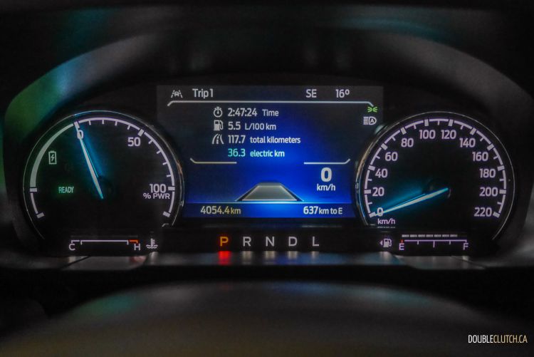 Perhaps the most un-truck like thing about the Maverick is the incredible fuel economy. With the hybrid powertrain it’s best in class, rated at 5.8L/100km city, 7.1L/100km highway, and 6.4L/100km combined. I managed 5.2L/100km with an even mix of city and highway driving. What really surprised me was the fact that 143 kilometers of out of 388 total were all-electric (and that there was a display to tell me this). With other hybrid systems you have to be conscious about how much accelerator or speed you can use to stay in electric power, but with the Maverick I didn’t have to think about it at all. The other advantage to the hybrid powertrain is its range. With only a 52-liter tank the Maverick is capable of covering kilometers between fill-ups.