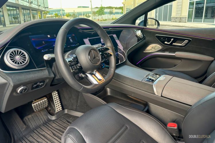 It may share the same 107.8 kWh battery pack as the standard EQS, but the AMG’s increased power leads to a slight decrease in efficiency. Transport Canada estimates a range of 466 kilometres per charge, compared to 547 km for the lesser EQS 580. In our testing, we recorded a real-world range of about 350 kilometres. On charging, Mercedes makes similar claims for the AMG EQS as it does for the standard model: through their partnership with FLO, you can find charging stations and activate sessions through the Mercedes Me app.