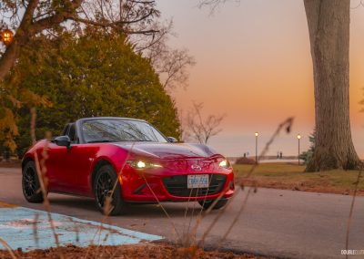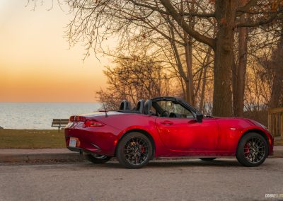 I’ve spent a sizable amount of time with this particular mid-grade MX-5 Miata, fitted with the same lightweight BBS wheels, perfectly honed Bilstein shocks, and glorious mechanical limited-slip differential as the car with which I tore up Angeles Crest. The big difference is, instead of being on vacation, surrounded by surreal natural beauty and perfect climate, I was in the broken pavement grid that is Toronto.