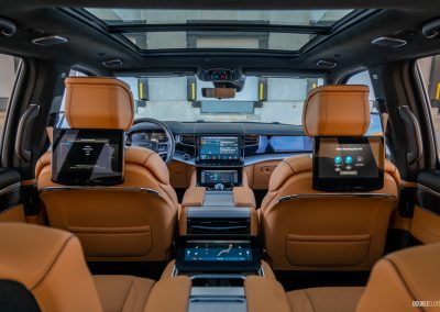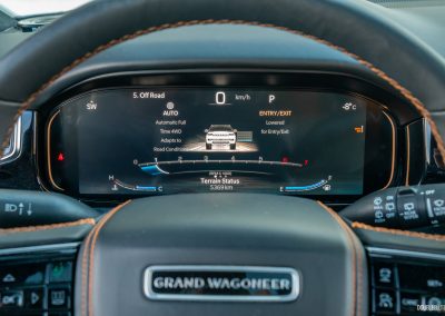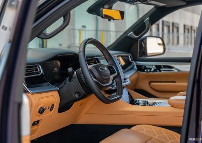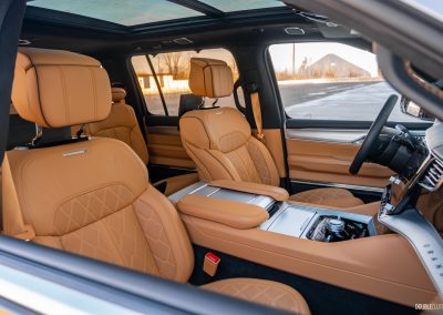 Now, let’s talk size. The Grand Wagoneer L competes with the Escalade ESV and the stretched-out Navigator L. It measures 226.7 inches long, some 0.3 inches shorter than the ESV, and five inches shorter than the Navigator L. Also of note, the Chevrolet Suburban is an inch shorter than the Caddy, which means that extra length is all bumper just to one-up the Jeep on paper. At 83.6 inches, however, the Wagoneer is wider than both the Escalade and Navigator, meaning it truly is the biggest of the big. These vehicles are known for their imposing stances and spacious interiors, catering to those who demand presence and room in equal measure, and the Grand Wagoneer L delivers.