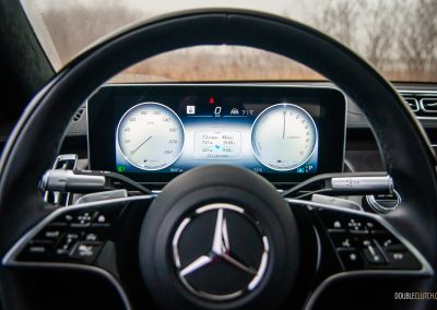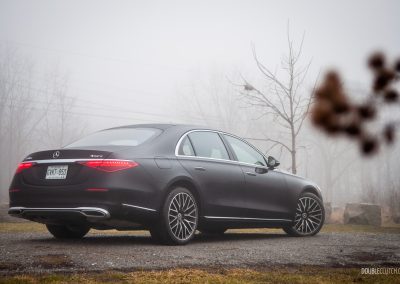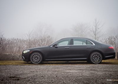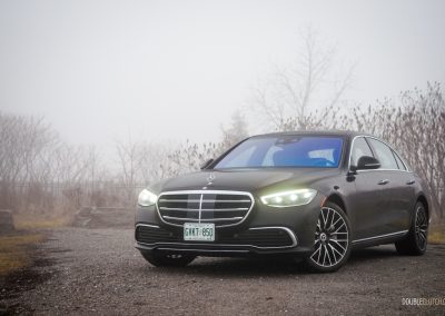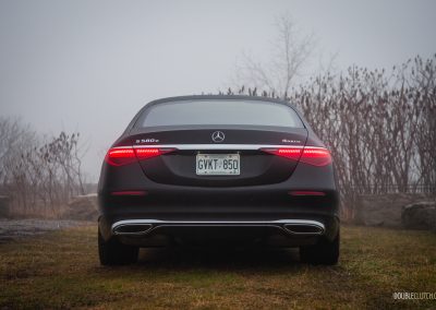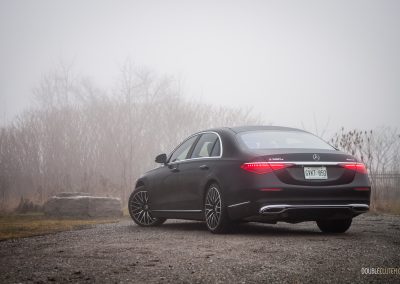 Whether you subscribe to the “compromise” or “best-of-both-worlds” angle with PHEVs, it’s clear Mercedes was perhaps a bit too optimistic in estimating the S 580e’s range. Benz quotes 90 kilometres of EV-only range, while Natural Resources Canada rates the S 580e at 74 km in EV mode. Our experience lined up with the latter. We consistently eked out 76 kilometres each time we ran the battery down from full, with ambient temps around the freezing mark. That’s a lot less than 90, but still quite good. Level 3 fast-charging is a $650 option; without it, expect a full charge from empty in about two and a half hours on a Level 2 charger.