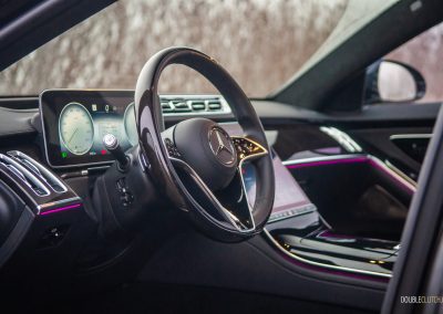 Like its forebears, the S 580e takes isolation seriously. It wafts along undisturbed, with the adaptive air suspension filtering out all but the roughest of potholes and choppiest of roads, and the ample sound deadening and laminated glass all but eliminate wind and road noise. It’s a very serene environment, but the S 580e occasionally exhibits the same kind of inconsistent brake feel as the EQS leading to some occasionally jarring stops, though it’s not as frequent. That or we’re finally used to it.