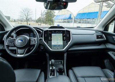 Beyond the engine, overall ride quality is solid, tuned on the softer side with no sporting intent. It swallows up larger bumps well, but smaller ones seemed to reverberate through the cabin more than they should have. Still, most families won’t have issues with this Subie’s ride quality. What is of concern is the steering, which is far too light and lacks any on-centre feel at lower speeds. You could easily see-saw this steering wheel as they used to in movies; things do get better at highway speeds when the steering weights up, but it was hard to get over the lack of feel around town.